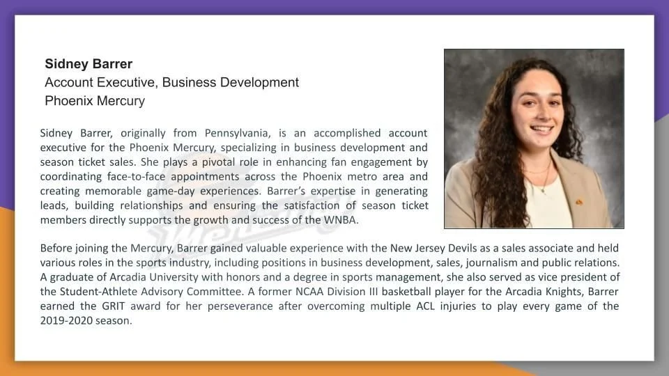 To strengthen stakeholder trust and internal cohesion, I developed executive biographies for key leadership within the Phoenix Mercury and Suns organizations. This project required synthesizing complex professional histories into a unified brand voice that resonated with both corporate partners and internal teams, ensuring a seamless transition from internal recognition to external business development.