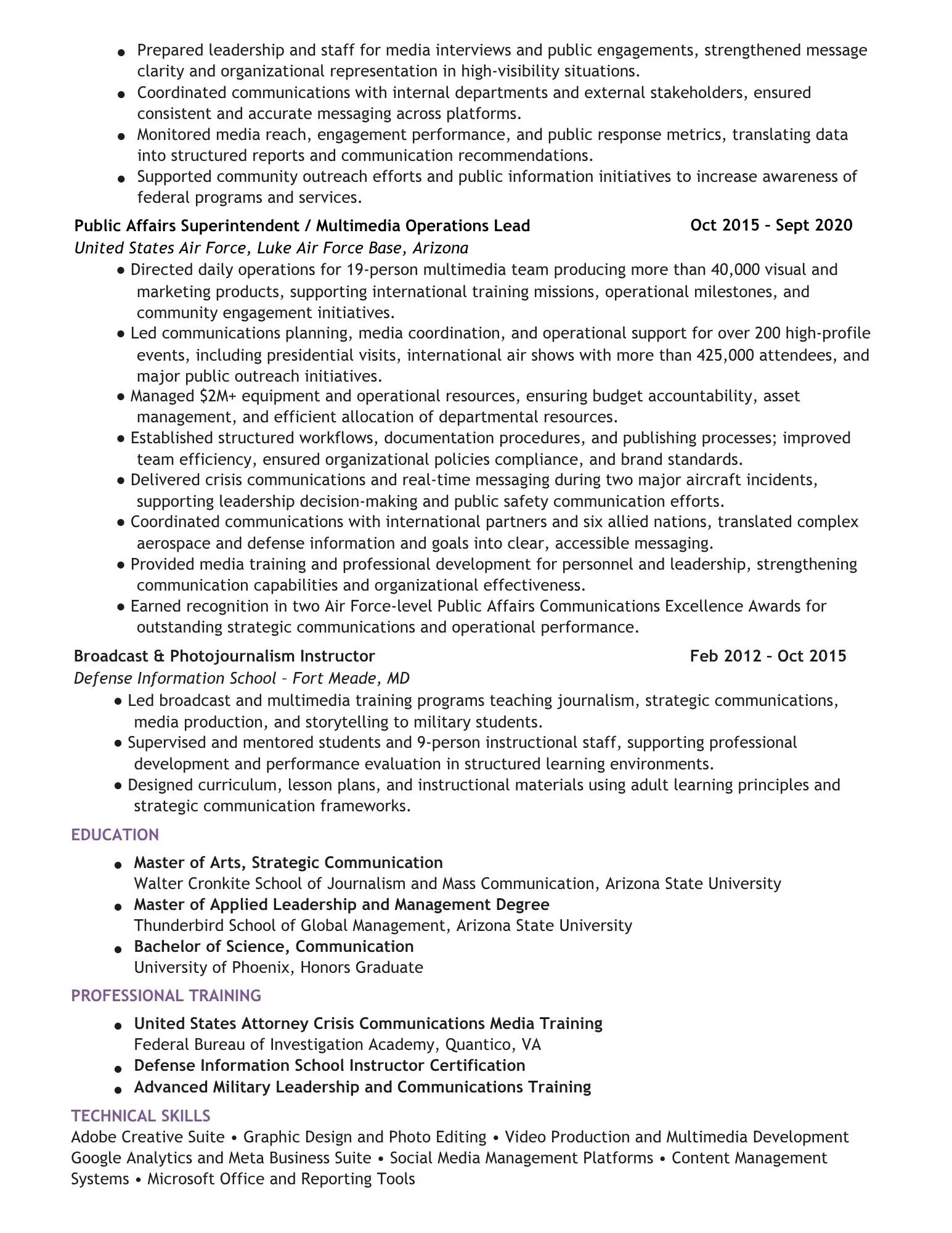 Resume Thank you for exploring my work.If you are looking for a strategic leader to architect your organization’s narrative through high-impact multimedia and data-informed strategy, please share your inquiry below.